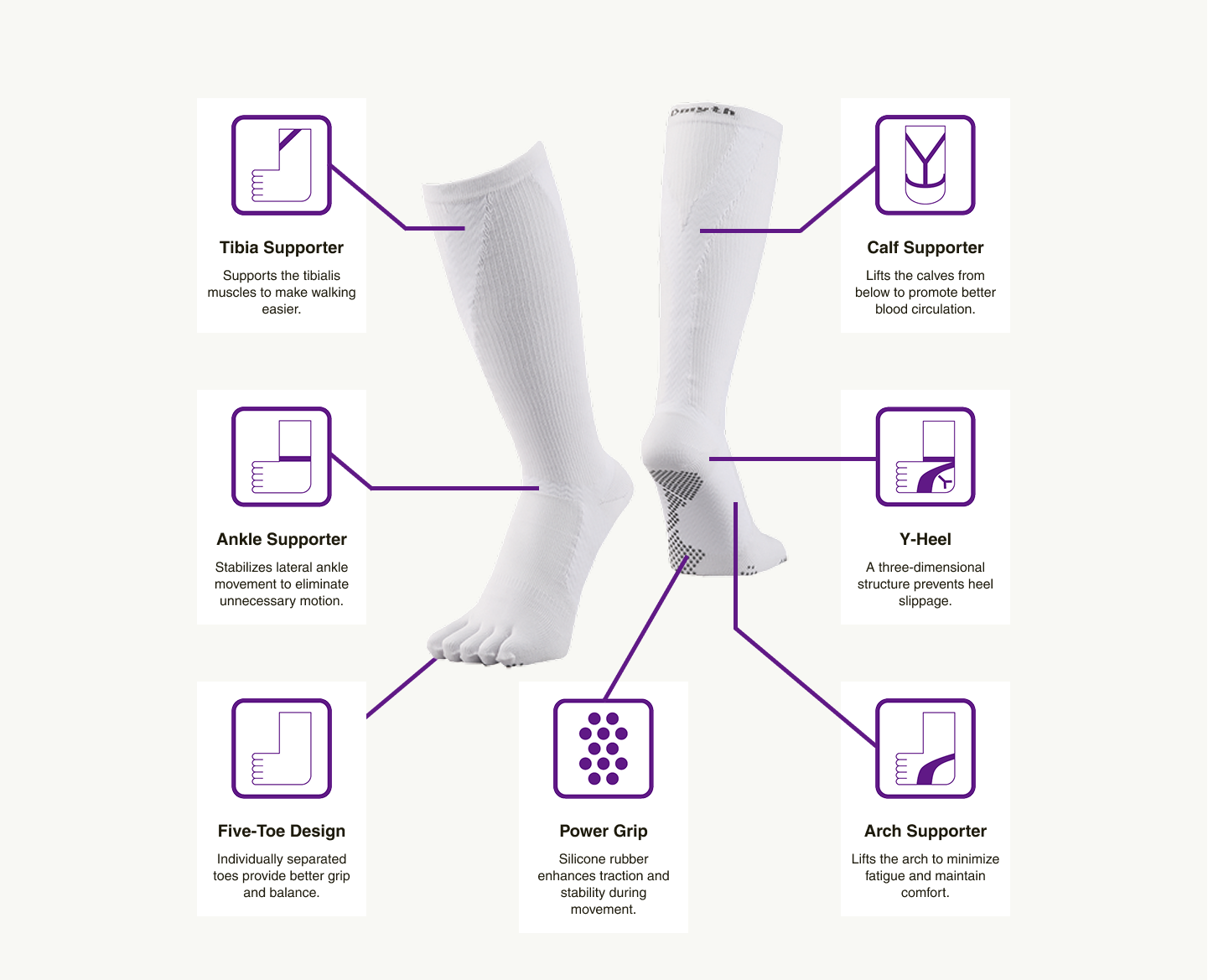 Draw out maximum power from your feet and minimize fatigue. That’s Dmyth Premium support socks.